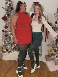 The deep green base gives you smooth, cosy coverage that feels soft and warm even in the chilliest weather. The colourful light strand design brings instant cheer and makes these tights just as perfect for office celebrations as for festive nights out. Fairy Lights strikes that ideal balance between wearable and wonderfully whimsical, adding a spark of seasonal joy to any outfit. Made with Snag’s signature super-stretchy fit, these tights hug your body comfortably and stay in place all day. The high waistband sits smoothly without rolling or digging in, while the breathable cotton gusset keeps you fresh through every party, dinner and festive errand. Strong, soft and designed to last the whole season, these tights are ready to shine as brightly as your holiday spirit.