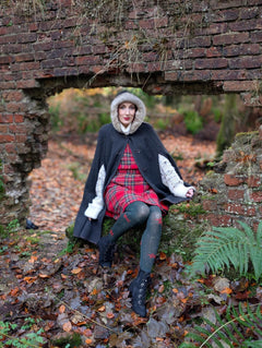 Step into the season with Woodland Magick, our enchanting 80 denier tights that feel like wandering through a dark, wintry pine forest sprinkled with Christmas magic. Set on a deep fern green base in our Snag colourway Crocodile, these tights feature bright red pentagram stars and tiny grey dinky dots scattered across the legs, all cleverly knitted into the fabric for a smooth, seamless finish. Festive, fun and beautifully unique, they bring a little woodland wonder and wicca to every outfit.