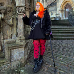 - Embrace Contrast: Try pairing the edgy print with something soft, a flowy velvet dress in deep green or navy works beautifully to ground the look with gothic romance.