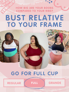 Hemos escuchado sus comentarios y ahora hay tres tallas de copa: Regular, Grande y Grande. Grande es la última edición y está diseñada para quienes tienen una relación contorno-copa menor (el tamaño del busto en comparación con las costillas).