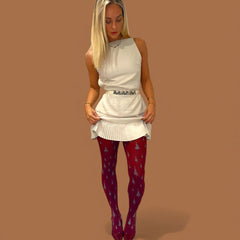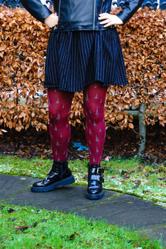 Meet Enchancted Forest, cosy 80 denier tights with a deep burgundy base and shimmering silver tree motifs scattered up the legs. They create a magical woodland scene that catches the light beautifully, adding a subtle touch of sparkle to any outfit. Soft, warm, and wonderfully comfortable, they keep you feeling snug while adding a playful, whimsical twist to your style.