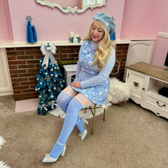 Whether you want a playful something blue for a Christmas wedding or a head-turning pair of statement tights for the festive party, Snowflake Garter adds instant winter magic to any outfit. The pastel blue is soft, dreamy and flattering, while the snowflake detailing gives just the right touch of seasonal pizzazz. Easy to wear, warm, and wonderfully unique, these tights let you show off your legs in comfort and style. Made with Snag’s iconic super-stretchy fit, Faux Snowflakes hug your curves smoothly and stay exactly where they should all day long. The high waistband sits comfortably without rolling or pinching, and the breathable cotton gusset keeps you feeling fresh whether you are celebrating outdoors or dancing the night away. Warm, wearable and utterly charming, these tights make festive dressing effortless.