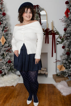 The rich navy base gives smooth, warm coverage, while the repeating white dots bring a touch of fun that pairs effortlessly with dresses, skirts, or chunky knits. Versatile, comfortable, and effortlessly stylish. Made with our signature super-stretchy, stay-put fit, these tights mould to your body without feeling tight or restrictive. The high waistband sits comfortably without rolling or digging in, and the soft, durable fabric is designed to keep up with everything from office days to late-night adventures. A breathable cotton gusset keeps you feeling fresh, making Sweet Spot your go-to tights all winter long.