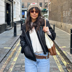 Buckle up and meet the Bessie Aviator Jacket in Black borg. This is aviator attitude wrapped in a teddy-bear hug. It is a vegan-friendly cropped jacket crafted from ultra-soft faux suede with plush borg trim on the collar and sleeve hems. Zip it up once and you are instantly wrapped in pure luxury that feels like stealing the duvet on a winter morning.