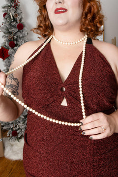 Découvrez votre nouvelle pièce maîtresse des fêtes : la robe dos nu Snag Lurex bordeaux. Confortable et glamour à souhait, cette superbe robe est dotée de bretelles ultra-douces en tissu contrasté. Elles se nouent autour du cou pour un ajustement parfait sans serrer. Vous pourrez ainsi danser toute la nuit sans souci.