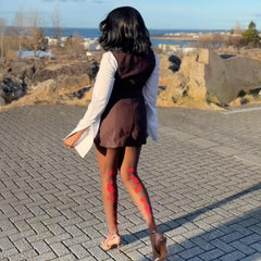 ❤️ A lucky red paper cut inspired design running up the back of the leg