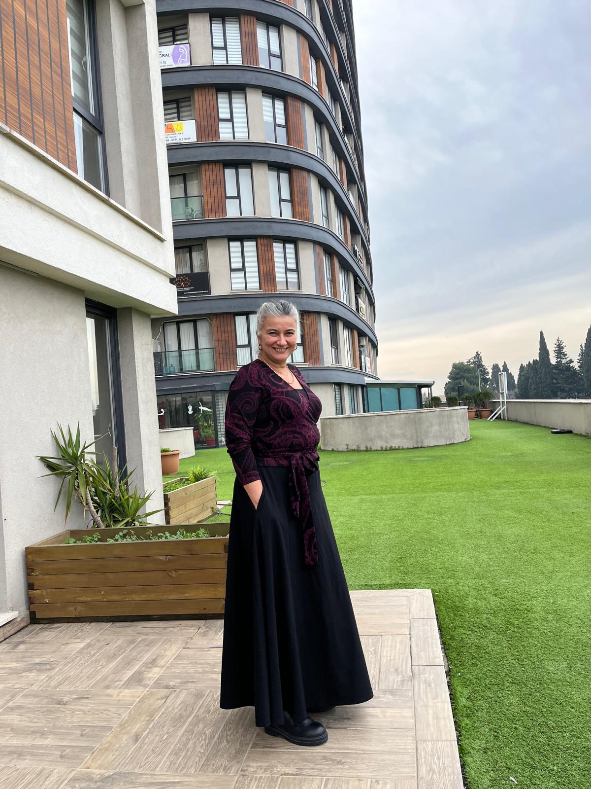With 27 years of industry experience, she oversees production with a calm authority, ensuring every garment meets her high standards so you feel happy and beautiful.