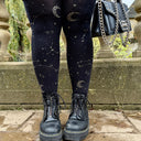 We searched where the veil is thinnest, to find Hallow-queen star and moon tights. Like a tapestry woven from the cosmos, constellations of silver glitter stars and crescent moons dance across the legs, shimmering along the purple haze base. Step into the celestial, with the perfect witchy tights that are so soft, comfortable and really fit.