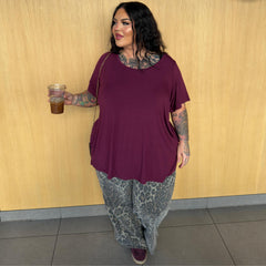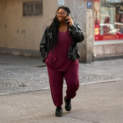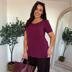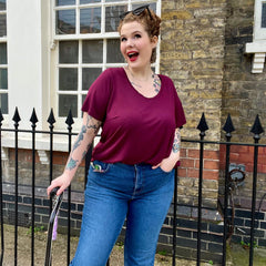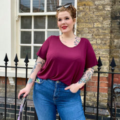 The cut is where it really shines. A soft scoop neckline frames your face and flatters the bust, while the fit sits neatly at the shoulders before flowing into a gentle, longline flare that skims over your tummy without clinging. It moves beautifully with your body, giving shape without restriction and coverage without heaviness. The bum-covering length makes it perfect with anything from jeans to leggings, whether you’re heading out, staying in or winding down for the night.