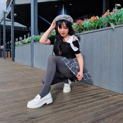 Instead, we have different, easy-to-use size guides for our tights and our clothing, all based on real body measurements. Just follow the size guide here on the product page to find your perfect fit!