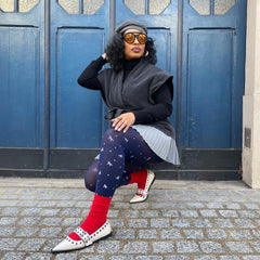 Dinky Horses are designed to carry that energy into your everyday. They are warm but breathable, opaque without feeling heavy, and soft with just the right amount of stretch to move with you as you stride, sprint or dance your way through the day. The Ocean Depths blue is rich and grounding, while the playful print adds a spark of joy and personality to every outfit.