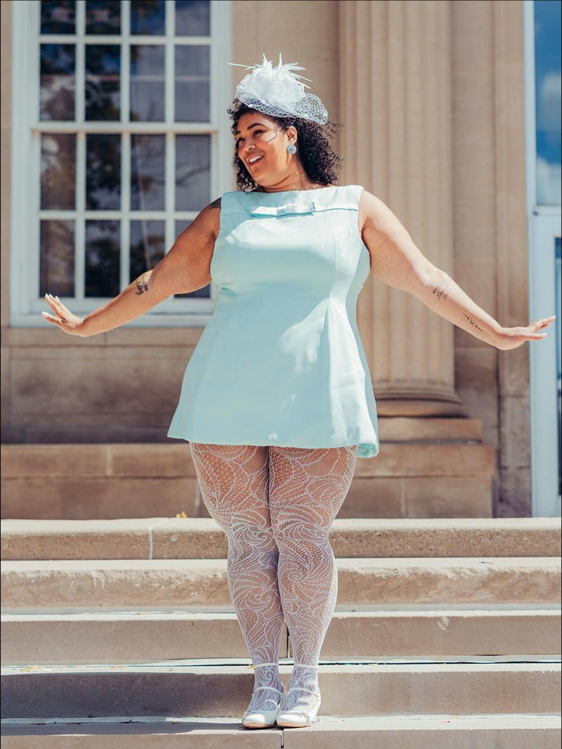 Treat your legs to our white Time Warp fishnet tights with an incredible swirling lace fishnet pattern from toe to waist.