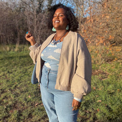 The cheekily modest scoop neck and long sleeves offer coverage while letting a subtle glimpse of skin or your chosen underlayer peek through. Slip it on once and you are instantly floating on cloud nine, feeling like you have captured a perfect daydream sky on a lazy summer afternoon. Perfect for anyone who loves losing themselves in a good daydream. Layer it over a crisp white bra or cami for sweet modesty, or go bold and bare for that flirty fun. It is sexy yet sweet, full of character and endlessly adaptable.