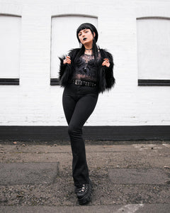 Lightweight and breathable, it feels as good to wear as it looks. Pair it with a skirt or trousers for dark elegance, or add one of our body harnesses to push the look further.